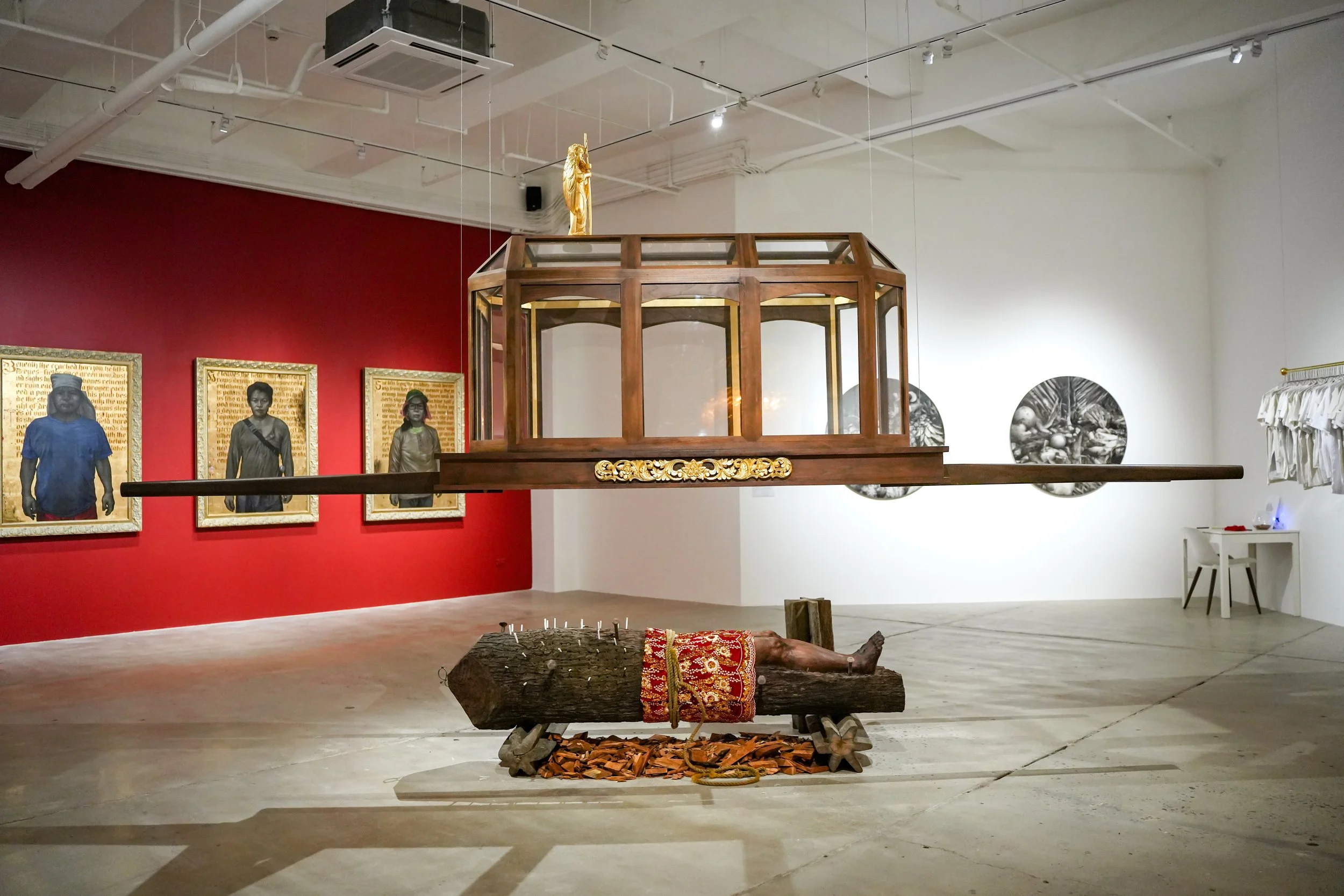 The exhibition Halik sa Lupa (A Kiss on the Ground) could easily be mistaken for a visual spectacle. From the gilded sculptures, monumental installations, to the riot of materials ranging from rice to gold leaf. Yet during a recent “Talaban” dialogue with art scholar Eileen Legaspi-Ramirez, Filipino artist Leslie de Chavez revealed that the exhibition’s true foundation is conversation.