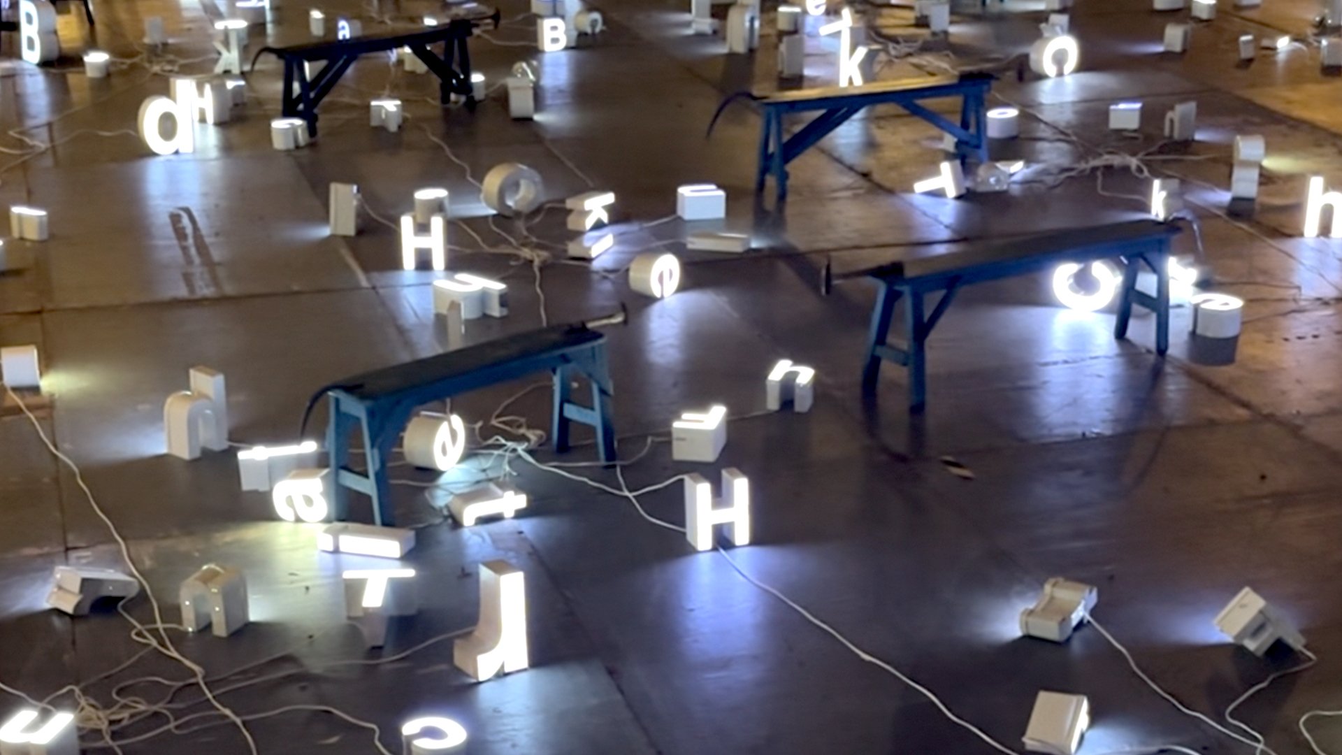 Here, found sign letters and everyday objects are reassembled into a collective lexicon. This interactive installation nudges every passerby to consider the grammar of public space—what we place, what we say, and what we choose to illuminate.