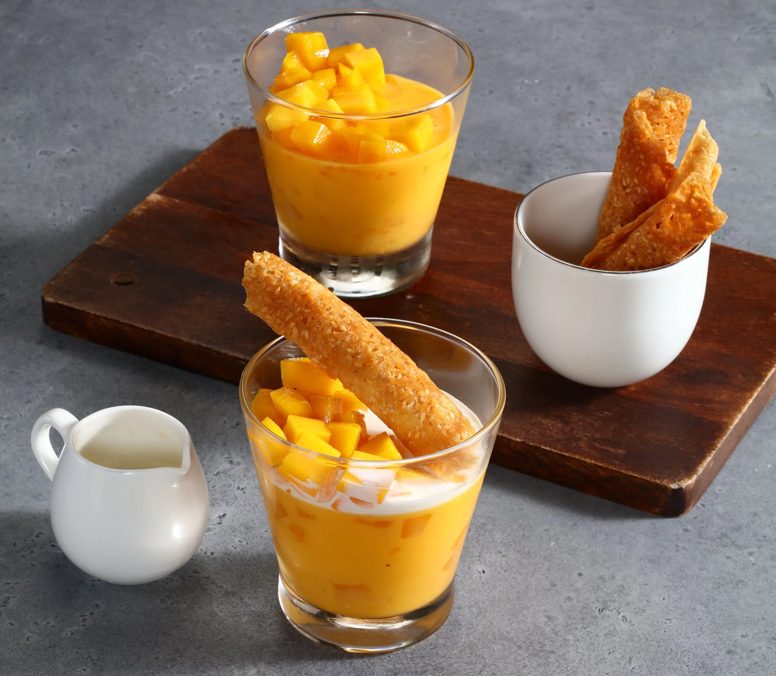 Seafood fried rice with conpoy, egg white, and pine nuts, and E-fu noodle with ‘Ma Po’ tofu and seafood. The latest dessert additions are the Mango pudding as well as the Chinese egg tart.