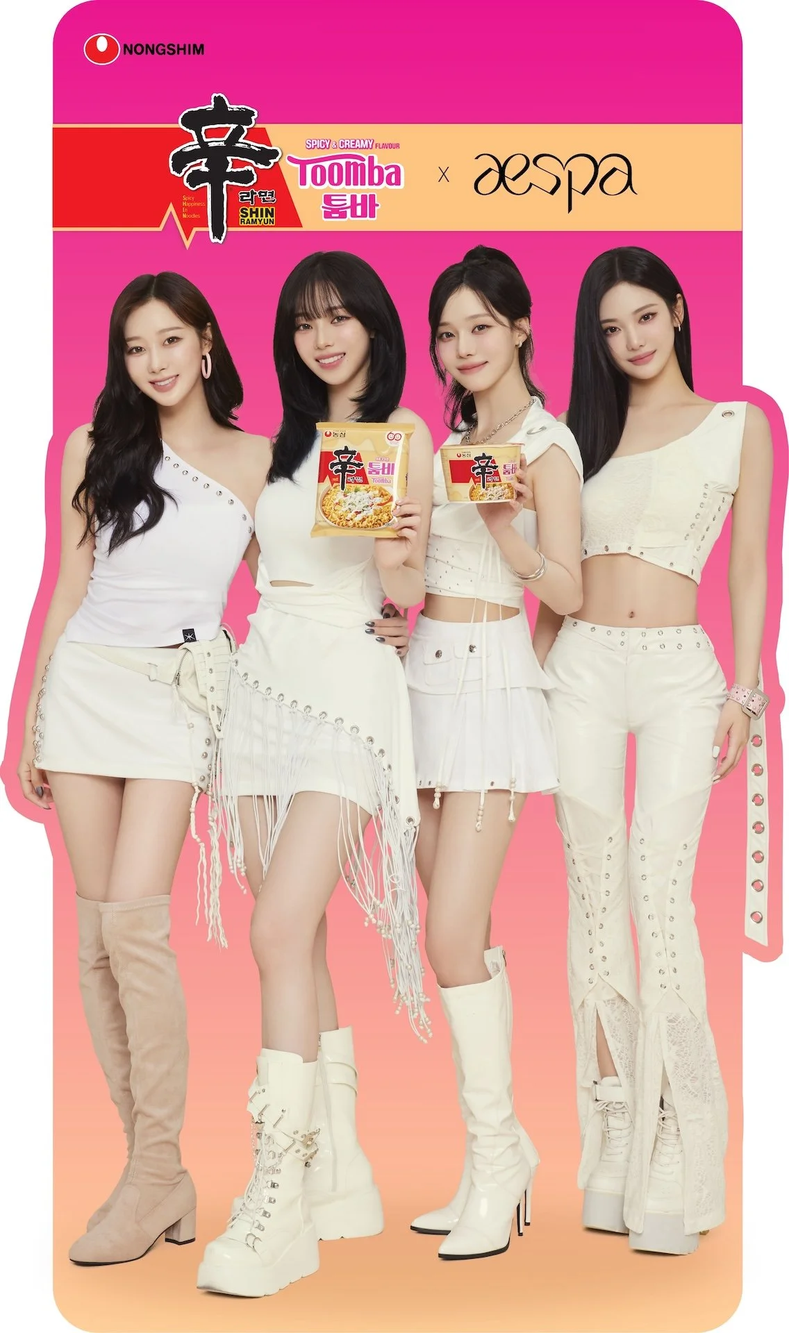 Nongshim’s collaboration with Aespa is a perfect match. Known for their bold sound and striking style, the group brings a fresh, high-energy vibe that pairs effortlessly with Nongshim’s signature heat.