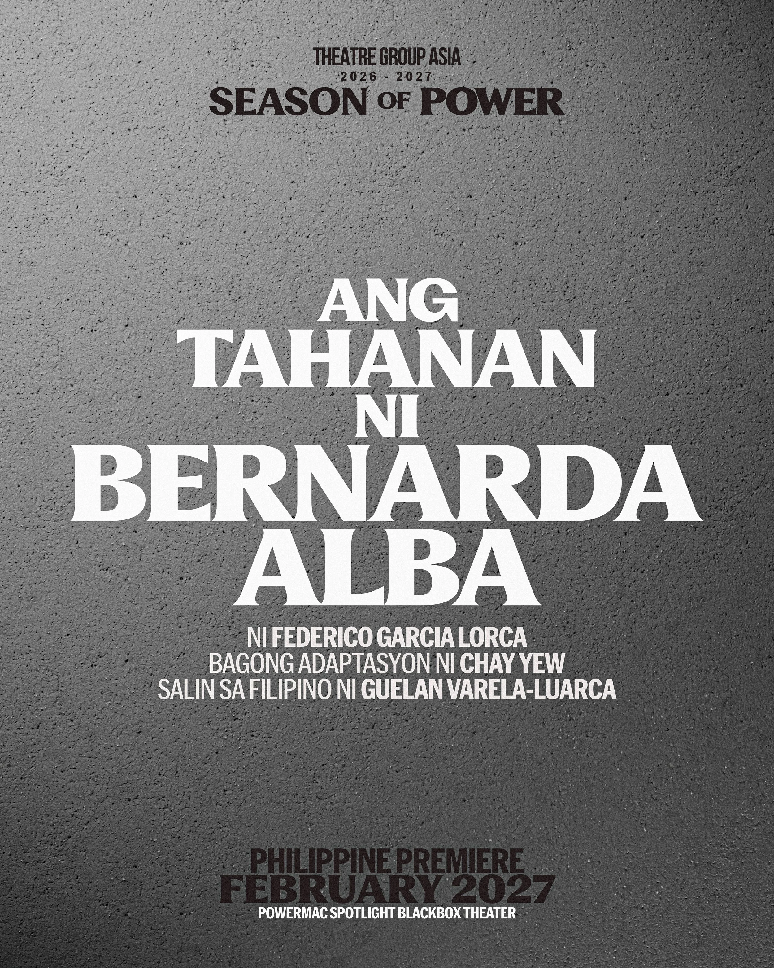Ang Tahanan ni Bernarda Alba is set to take the stage in February 2027, a Filipino adaptation of Federico Garcia Lorca’s final and most powerful play by Chay Yew, and transposed by Guelan Varela-Luarca.